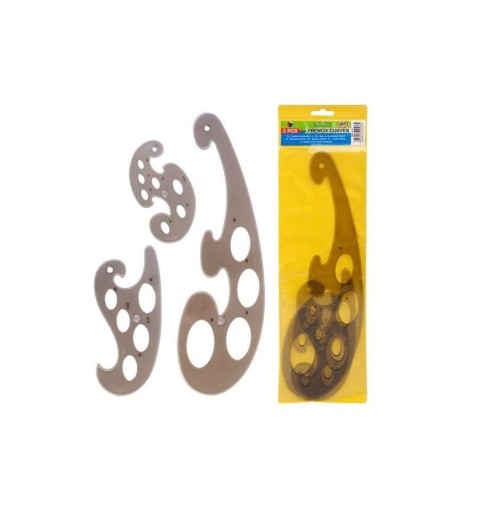 Krzywiki kreślarskie z kolekcji Starpak dedykowanej dla szkoły i biura. W zestawie znajdują się 3 szablony. Idealne podczas wykonywania rysunków technicznych do wykreślenia linii krzywych, które są niemożliwe do narysowania przy użyciu cyrkla. Użycie krzywika pozwala na wyprowadzenie dowolnej linii krzywej o zmiennym przebiegu, która nie jest odcinkiem łuku okręgu.