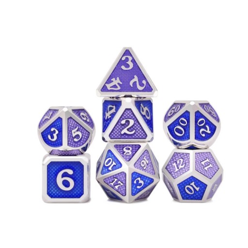 Zestaw siedmiu metalowych kości do gier fabularnych