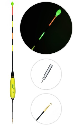 Wysokiej jakości świecący spławik przelotowy typu WAGGLER. Świeci intensywnym światłem LED. Zasilany baterią 3V ( w zestawie ).