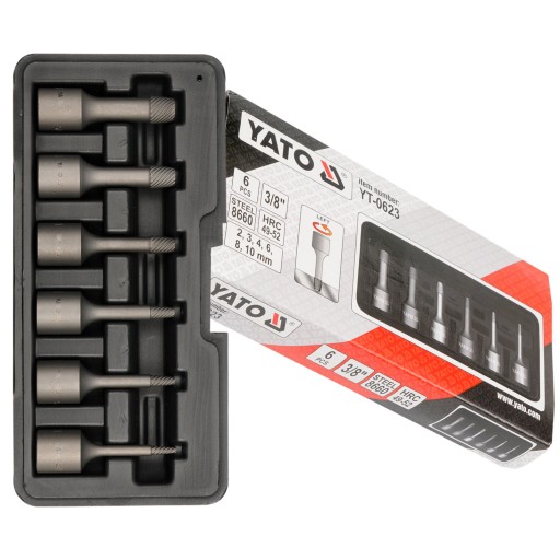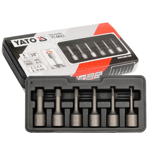 YATO ZESTAW WYKRĘTAKÓW DO USZKODZONYCH ŚRUB SZPILEK 6 SZTUK 3/8'' YT-0623