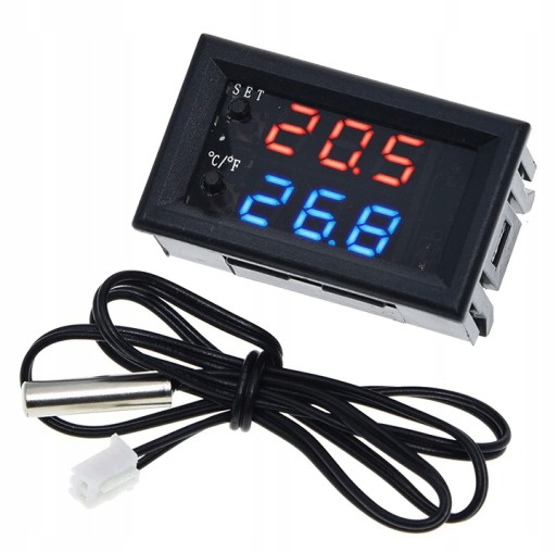 ⭐ Regulator odpowiada za utrzymanie temperatury na poziomie zadanej wartości poprzez badanie jej czujnikiem temperatury NTC10K który znajduje się w zestawie.