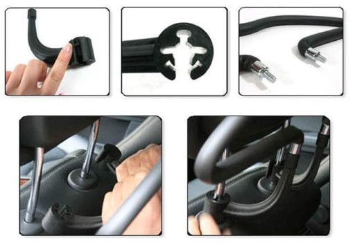 Wieszak samochodowy ze stali nierdzewnej Po prostu powieś je bezpiecznie w miejscu, aby wyglądać porządnie podczas ważnych okazji. Może być również używany do przechowywania plastikowych toreb na zakupy lub książek kieszonkowych. Dołącza do zdejmowanych zagłówków samochodowych, idealny do bluzek, garniturów, kurtek, płaszczy itp. Łatwy w instalacji i nie zajmuje miejsca we wnętrzu samochodu, wygodny i praktyczny. Projekt 3D, piękna i trwała, elastyczna gąbka, niezawodna ochrona