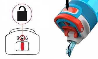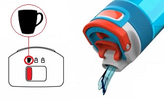 Naciśnij i przytrzymaj przycisk, a następnie przesuń suwak. Możesz pić tak, jak ze szklanki. Sprawdzi się podczas spotkań ze znajomymi. Ustaw przycisk i delektuj się swoim napojem.