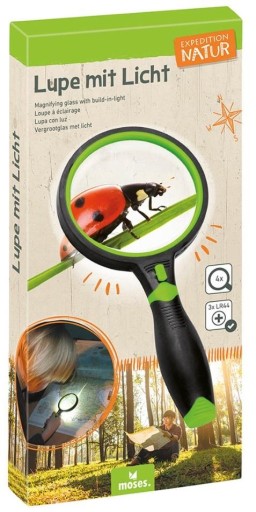 Lupa z Podświetleniem LED, 4 x z kolekcji Expedition Natur. Zostań wielkim obserwatorem. Ucz i baw się z nami. Oferujemy Ci: Profesjonalną lupę z kolekcji Expedition Natur. Poręczne, wytrzymałe szkło powiększające ze zintegrowanym światłem. Gumowana powierzchnia zapewnia pewny chwyt. Pozwala na 4 x powiększenie. W zestawie 3 baterie guzikowe LR44.