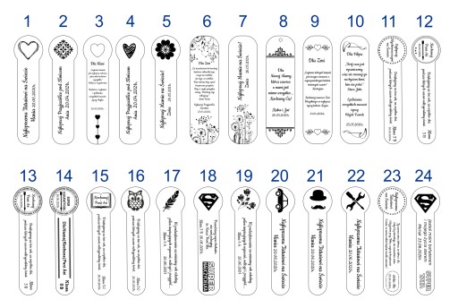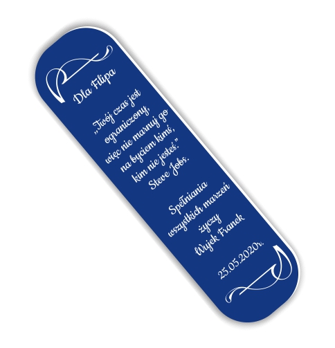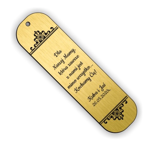 - Tył zakładki w kolorze graweru (np. złoty-ma czarny grawer i czarny tył zakładki).