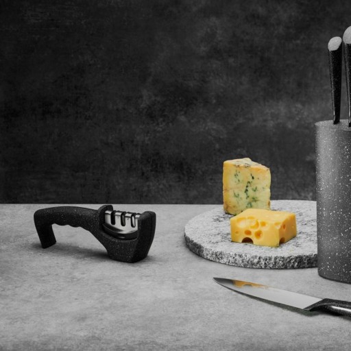 - Praktyczna trójfazowa ostrzałka GRANITEX doskonale sprawdzi się przy nożach z gładkimi ostrzami ze stali nierdzewnej.