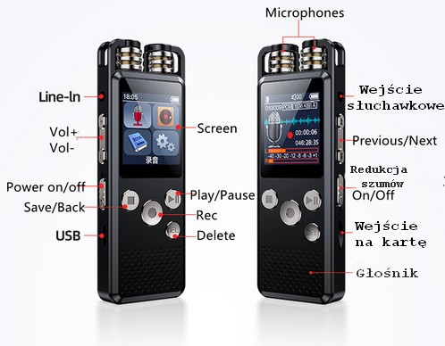 Dyktafon posiada wbudowaną pamięć 8 GB, którą można rozszerzyć poprzez zastosowanie karty pamięci nawet do 128GB
