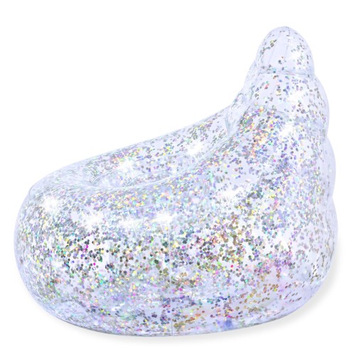 Wykonany z materiału PVC wypełnionego mieniącym się brokatem.