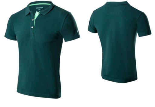 Męska koszulka polo w nowym kolorze szmaragdowej zieleni. Haftowane logo Škoda umieszczone na lewym rękawie.