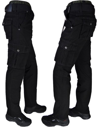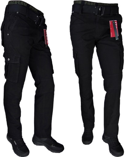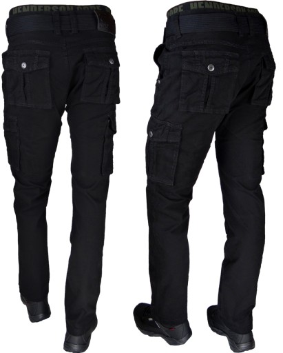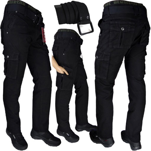 - Spodnie męskie w kolorze Czarnym (BLACK) parciany pasek w zestawie