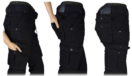 Bojówki Rozciągliwe Z PASKIEM Czarne