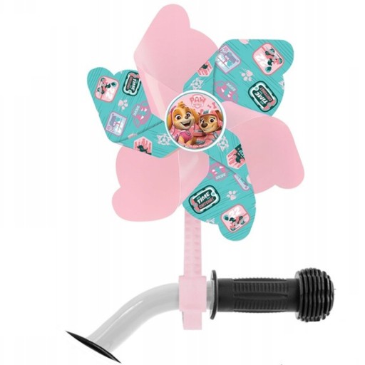 Kolorowe łopatki wiatraczka, zdobiące postaci z Psi Patrol, obracają się dynamicznie pod wpływem wiatru, nadając jednośladowi efektownego i radosnego wyglądu.