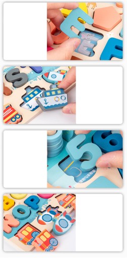 - Cyferki, znaki matematyczne: Zestaw zawiera kolorowe cyferki na planszy należy dopasować je odpowiednio kształtem oraz kolorem do pasującej luki. Po za planszą możesz uczyć z ich pomocą liczenia. Znaki matematyczne z zestawu idealnie w tym pomogą. Nauka połączona z zabawą jest najlepsza!