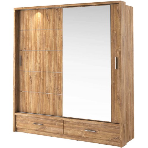 - Funkcjonalna szafa z dwojgiem drzwi przesuwnych wyposażona we wbudowane, energooszczędne oświetlenie ledowe