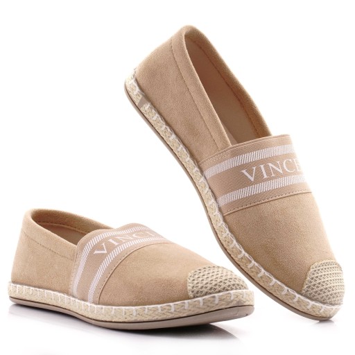 Klasyczne, a zarazem stylowe espadryle damskie renomowanej firmy VINCEZA. Posiadają elastyczną płaską podeszwę zdobioną plecionką. Cholewka wykonana z wysokogatunkowego zamszu ekologicznego. Buty, które będą pasować do wielu stylizacji.