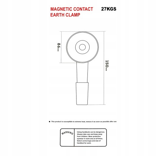 Bardzo przydatny i ergonomiczny uchwyt z silnym magnesem pozwalający na łatwe podłączenie przewodu masowego bez konieczności zakleszczania lub przykręcania do spawanego materiału.