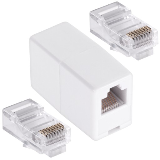 Łącznik dwóch kabli RJ45. Za jego pomocą połączymy 2 krótkie kable sieciowe RJ45 w jeden dłuższy.
