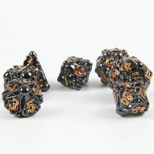 Zestaw siedmiu metalowych kości do gier fabularnych