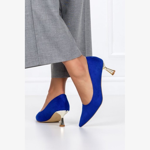 Chabrowe czółenka Casu na ozdobnym obcasie ze skórzaną wkładką D22WX3-C
