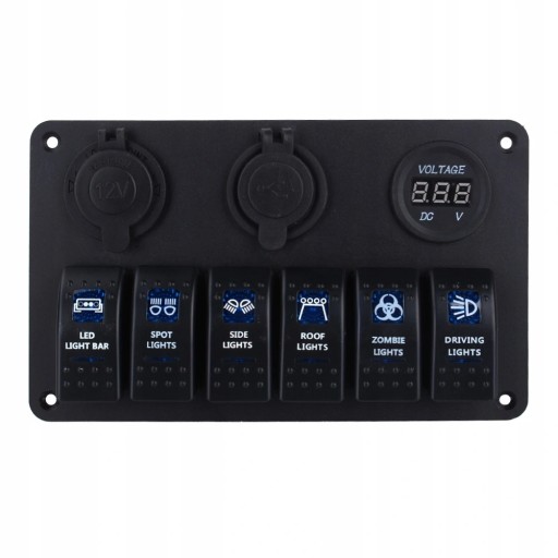 GNIAZDO ZAPALNICZKI USB PANEL PRZEŁĄCZNIKÓW 12V LED DO ŁODZI SAMOCHODOWEJ