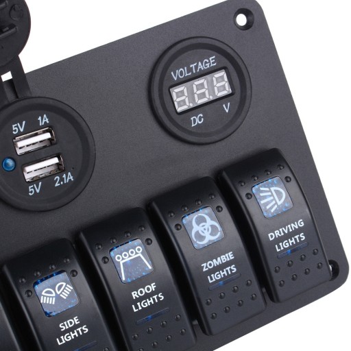 - Dostępne przełączniki: 6 Gang (LAMPA LED, ŚWIATŁA SPOT, ŚWIATŁA BOCZNE, ŚWIATŁA DACHOWE, ZOMBIE