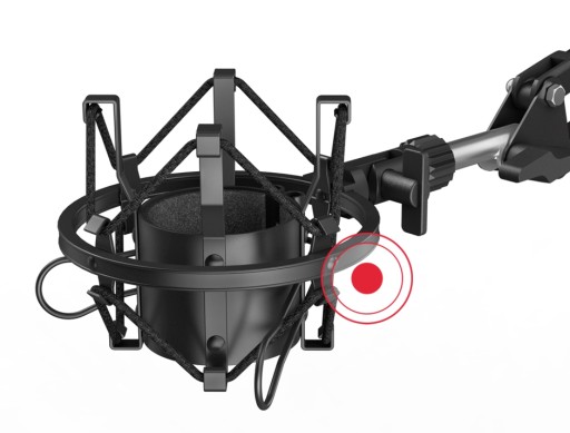- Kosz antywstrząsowy: niwelacja wibracji przenoszonych na mikrofon