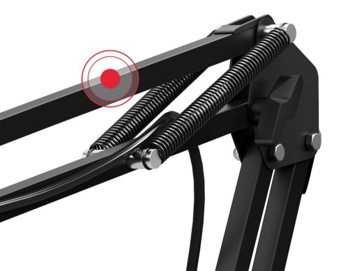 Mikrofon umieszczony na specjalnym wysięgniku nie tylko wygląda profesjonalnie, ale również jest praktyczniejszy w użyciu. Możesz ustawić go na wygodnej wysokości, zajmuje mniej miejsca na biurku, a śruba mocująca zapewnia odpowiednią stabilność.