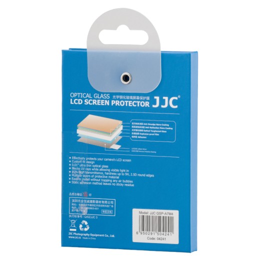 Seria ultracienkich osłon ze szkła optycznego JJC przeznaczonych do ochrony tylnego wyświetlacza. Osłona pozwala na doskonałe odwzorowanie obrazu, nie powoduje pogorszenia widoczności, nie odstaje od ekranu LCD, po zamontowaniu tworzy z nim jednolitą powierzchnię. Jej grubość to jedyne 0,5 mm.
