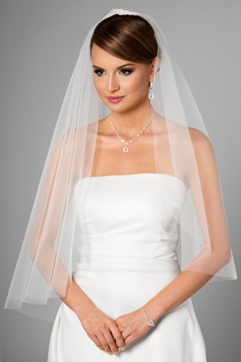 Pojedynczy welon wykonany z jedwabnego tiulu miękki i delikatny jak mgiełka, upięty na bezbarwnym grzebieniu.
