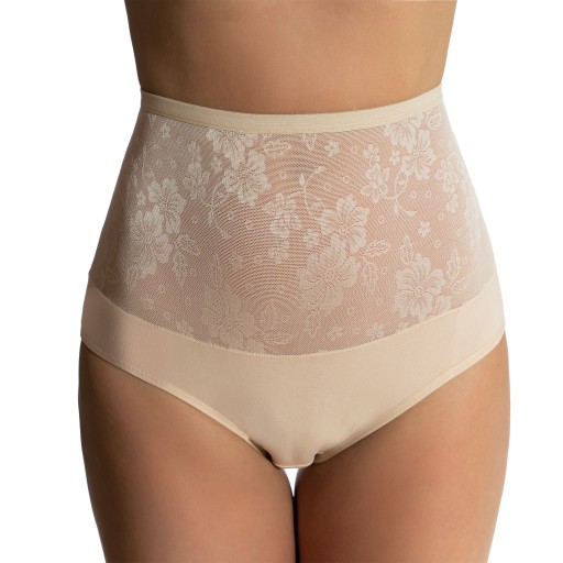 - Dzięki temu, że majtki mają wysoki stan idealnie modelują talię oraz wygładzają i spłaszczają brzuch.