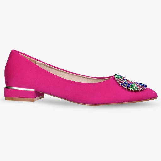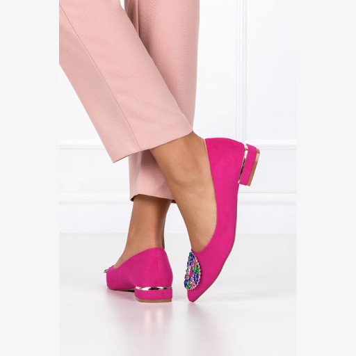 - modne fuksjowe baleriny damskie z efektowną ozdobą