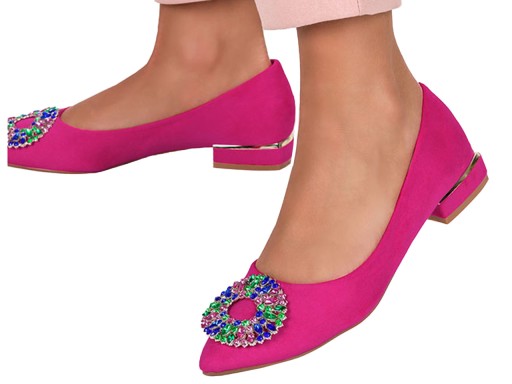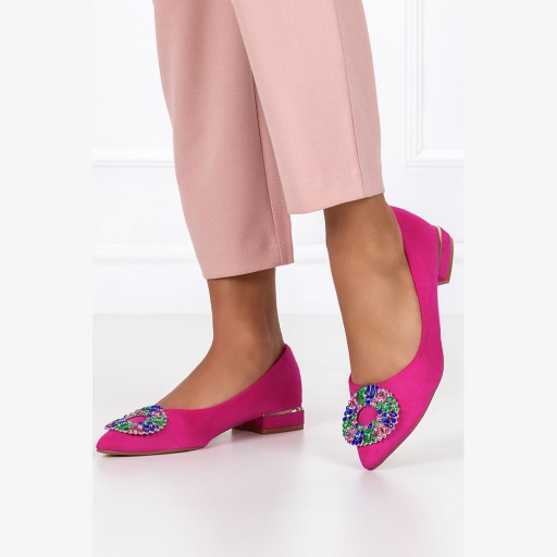 - modne fuksjowe baleriny damskie z efektowną ozdobą