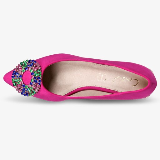 - modne fuksjowe baleriny damskie z efektowną ozdobą
