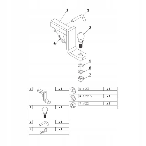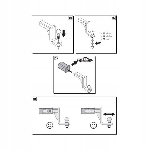 Należy samodzielnie dobrać odpowiedni adapter, biorąc pod uwagę warunek : wysokość środka kuli haka od podłoża powinna wynosić od 35 do 42cm (zgodnie z normą).
