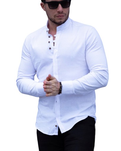 МУЖСКАЯ ОДНЯЯ РУБАШКА С ВОРОТНИКОМ-СТОЙКОЙ, БЕЛАЯ - XXL
