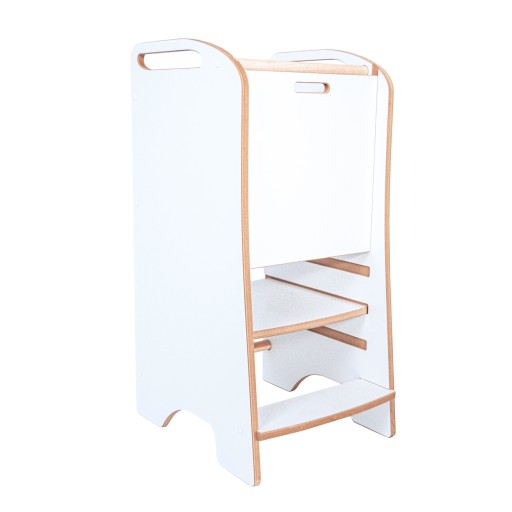 Wysokość mebelka jest regulowana, co oznacza, że rośnie razem z Twoim dzieckiem. To rozwiązanie, które zapewnia komfort i wygodę przez wiele lat. KITCHEN HELPER jest dostosowany do potrzeb maluchów, a jednocześnie idealnie pasuje do standardowych blatów kuchennych.