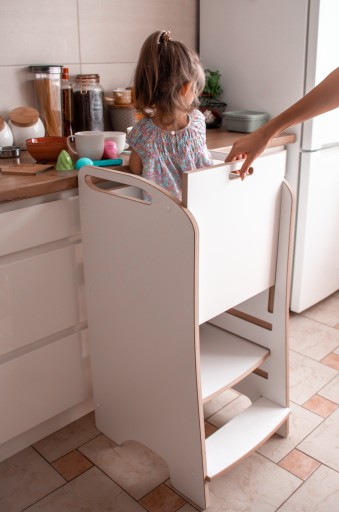 KITCHEN HELPER to nie tylko mebel. To także narzędzie, które pozwala Twojemu dziecku w pełni uczestniczyć w kuchennych czynnościach. Zapomnij o nieporęcznych krzesłach czy tradycyjnych stołkach – teraz Twoje dziecko może stać na odpowiedniej wysokości, by z łatwością dojrzeć na blaty i pomagać w przygotowywaniu pysznych potraw.