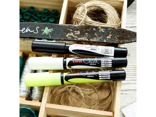 Profesjonalne markery kredowe UNI PWE-8K do pisania i malowania po czarnych tablicach i szkle.
