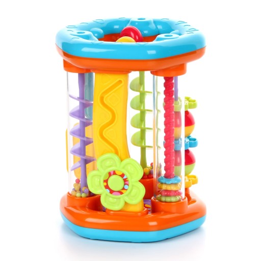 Zakręcony Roler z mnóstwem niespodzianek z każdej strony. Kolorowe koraliki do przesuwania, zabawne klepsydry z przesypującymi się kuleczkami zajmą niejednego Maluszka mnóstwem zabawy. Dodatkowo Roler tocząc się po podłodze zachęci dziecko do nauki raczkowania