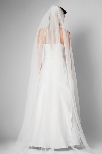Długi welon z jedwabnego tiulu