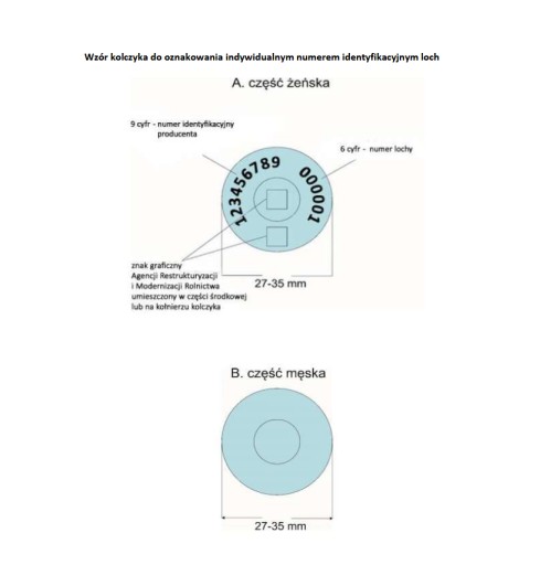 Zamówienie kolczyków z indywidualnym numerem identyfikacyjnym lochy posiadacz zwierząt składa bezpośrednio u dostawcy kolczyków tak jak w przypadku kolczyków do znakowania świń z numerem siedziby stada (pomarańczowe kolczyki) – tj. nie wnioskuje w biurze powiatowym ARiMR o przydzielenie puli numerów dla świń. Agencja nie bierze udziału w przydzielaniu numerów i nie pośredniczy w zamawianiu kolczyków dla świń i dla loch.