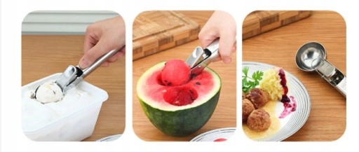 ✅Nie przywiera - dzięki czemu wygodnie i sprawnie można porcjować nie tylko lody, ale również puree. Gdy naciśniemy na rączkę, porcja zostanie odcięta za pomocą metalowego elementu.