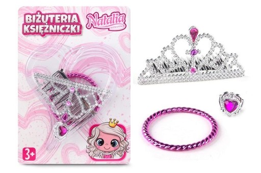 W zestawie: bransoletka, diadem, grzebień, pierścionek.