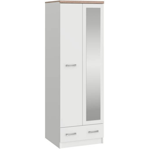 Szafa wyposażona jest w 2 drzwi i szufladę. Szuflady wysuwają się na metalowych prowadnicach rolkowych umożliwiających wyjęcie ich bez konieczności wykręcania śrub. Trwałość skrzyni szuflad gwarantują pełne płyty, z których są wykonane.