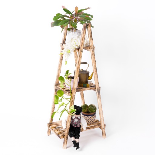 STOJAK NA KWIATY DREWNIANY DRABINKA KWIETNIK OPALANY
