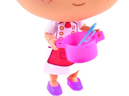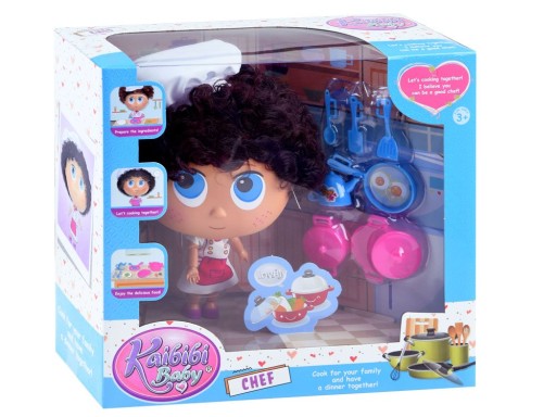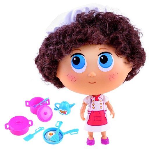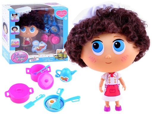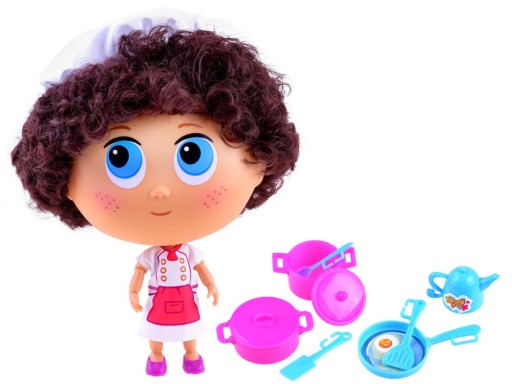 Totalnie oryginalna zabawka lalka w kucharskim stroju to świetny pomysł na zabawę. Lalka wykonana w całości z tworzywa sztucznego z mega kudłatą, owłosioną fantastycznie głową. Lalka ma ruchome wszystkie kończyny, zginane w stawach, nadgarstkach, łokciach, kolanach, stawie skokowym. Głowa obraca się o 360 stopni. Ubrana w fartuch kucharski, różowe pantofelki, na głowie ma czapkę kucharską. Na jej twarzy namalowane są wielkie oczy, urocze piegi i uśmiech. Do swej dyspozycji posiada zestaw garnków, patelnie i przybory kuchenne. Z taką lalką każda zabawa będzie czystą przyjemnością.