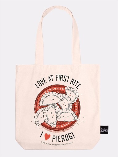 PIEROGI, czyli słowiańska ambrozja i największy dar Polaków dla ludzkości, od teraz na naszej stylowej torbie I LOVE PIEROGI! Ruskie, z kapustą, a może z jagodami? Love at first bite - miłość od pierwszego ugryzienia! Torba z nadrukiem I LOVE PIEROGI to idealny pomysł na prezent dla obcokrajowca i fanatyka pierogów. Taka pamiątka z Polski z pewnością zrobi na nim tak samo duże wrażenie jak to wspaniałe danie! Torba bawełniana I LOVE PIEROGI sprawdzi się także jako prezent dla Polonii. Gramatura 280 g/m Kolor ecru Nadruk wykonany metodą sitodruku (wysokiej jakości, bardzo trwały) 100% bawełna, torba ekologiczna Elegancka metka boczna Idealna pamiątka z Polski W środku torby pojemna kieszonka na akcesoria Wymiary: 41 x 41 x 8,5 cm, ucho: 64 x 3,5 cm Prać w niskiej temperaturze, prasować na lewej stronie, nie czyścić chemicznie