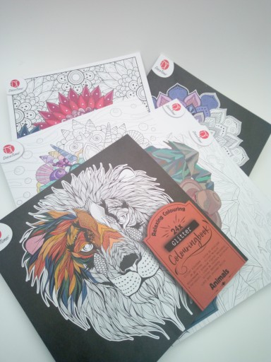 - 24 arkusze a na każdym z nich inny szkic do pokolorowania