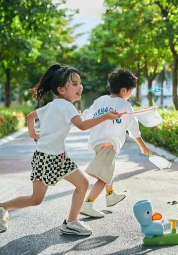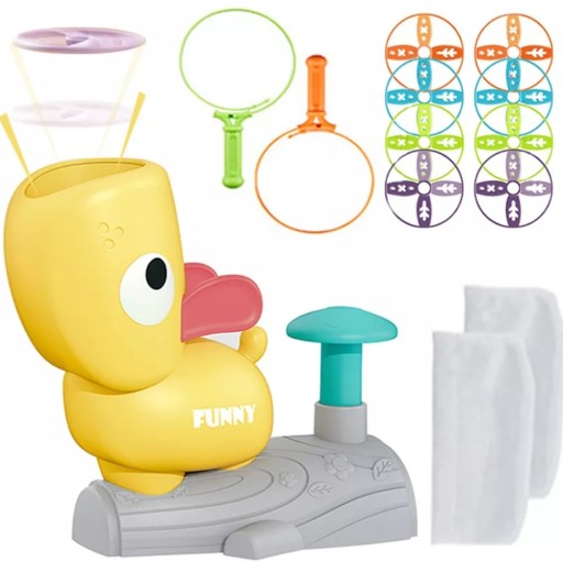 Zabawa polega na łapaniu śmigieł, który wyrzuci z siebie kaczka po nadepnięciu przycisku. W zależności od siły naciśnięcia przycisku śmigła polecą niżej lub wyżej. Dzięki temu zabawka nadaje się do domu jak i ogrodu.