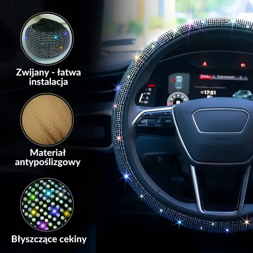 POKROWIEC NA KIEROWNICE CEKINY DIAMENCIKI UNIWERSALNY NAKŁADKA ETUI DO AUTA